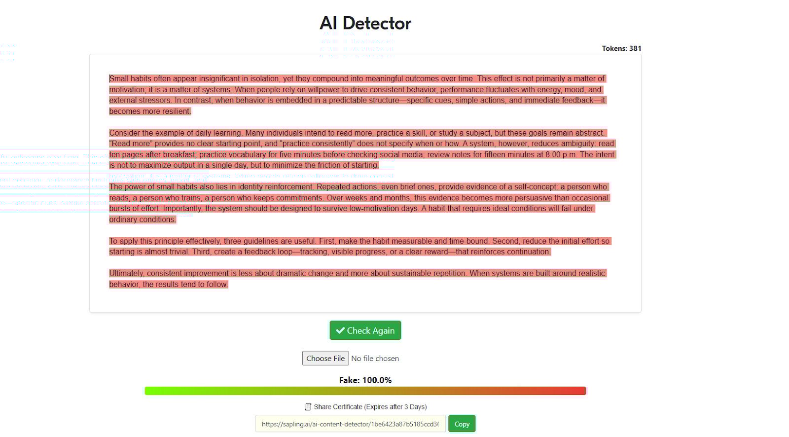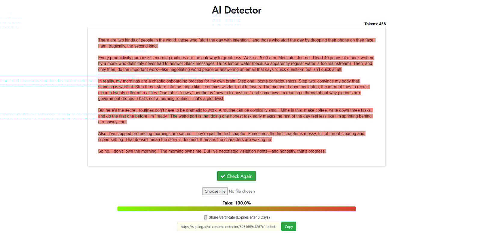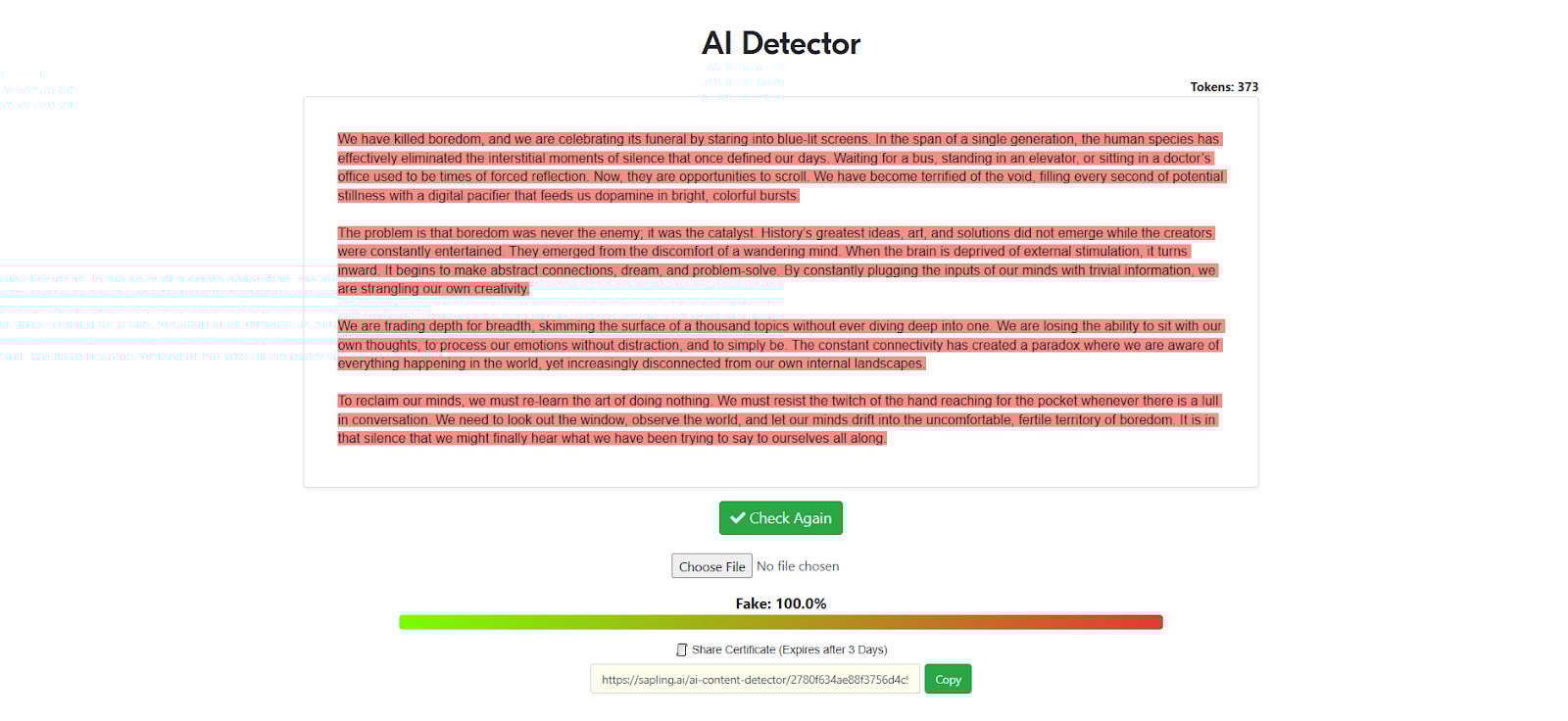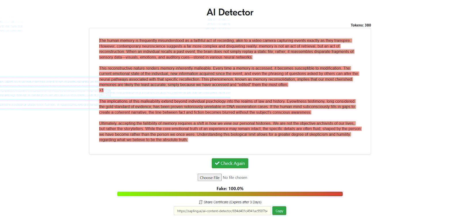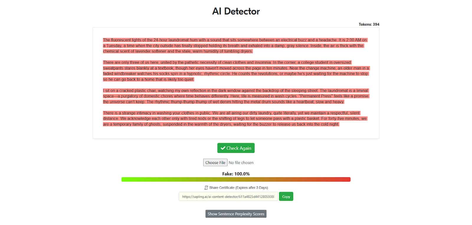 That stated, there’s a sensible catch that issues in actual utilization: Sapling’s free tier truncates enter at round 2,000 characters. Meaning longer essays, full weblog posts, or full-length educational papers typically get chopped — and detection high quality turns into a “partial scan” relatively than a real document-level verdict.