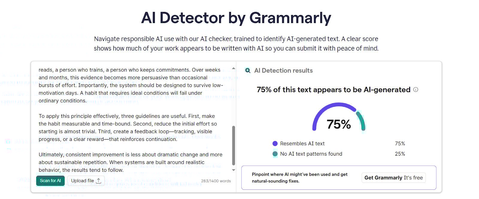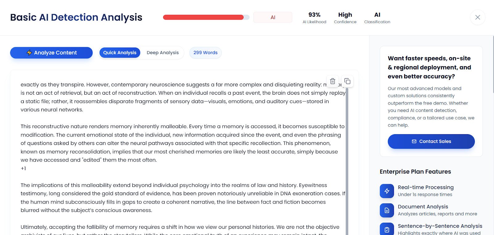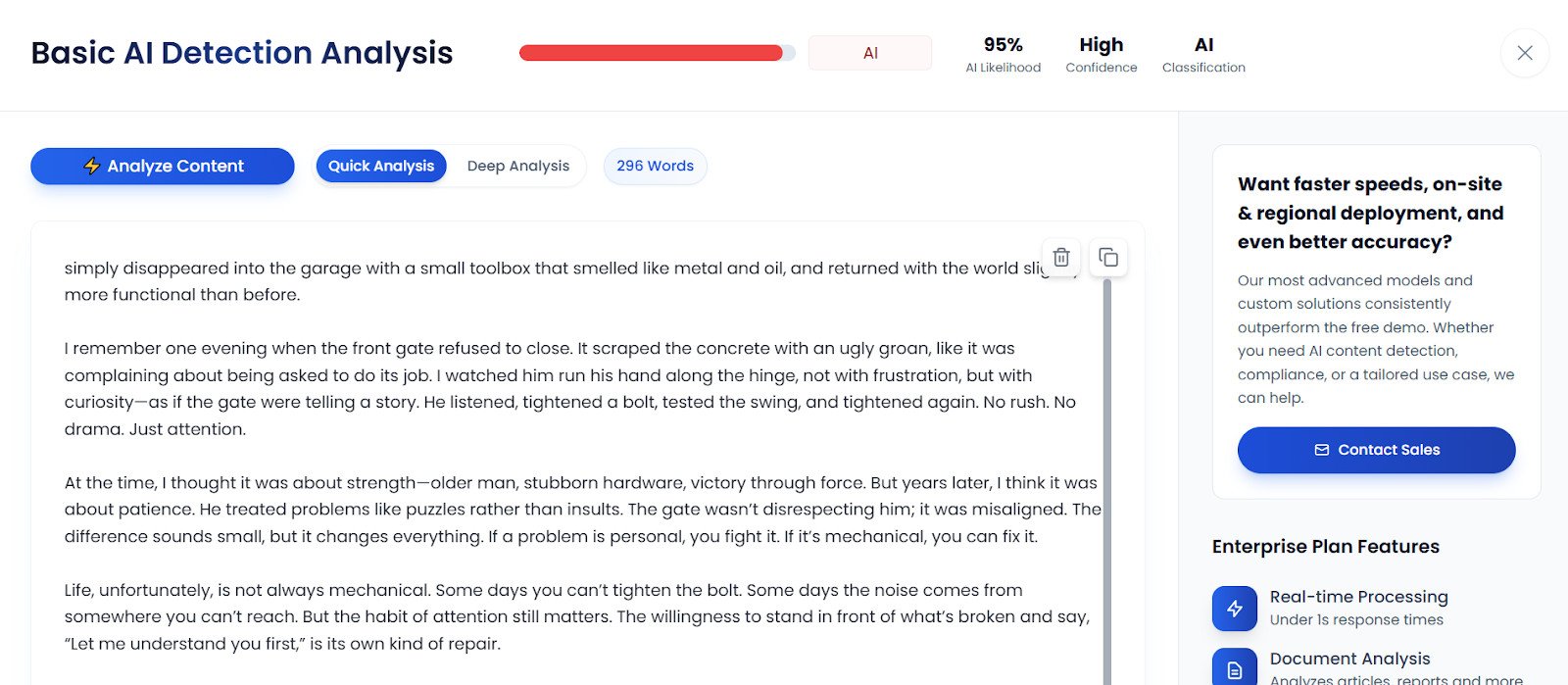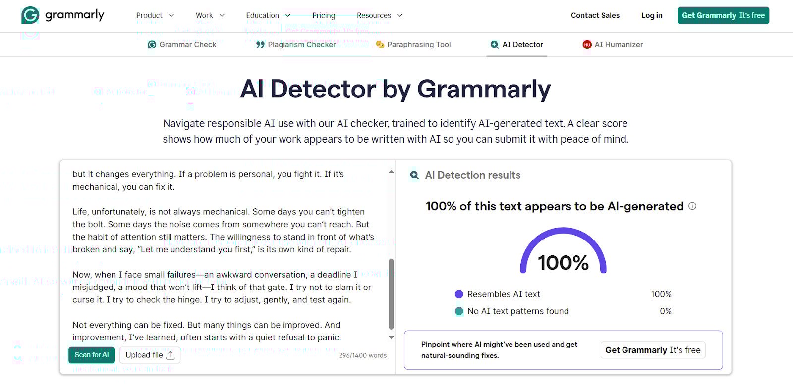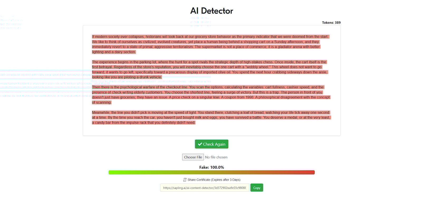 That stated, there’s a sensible catch that issues in actual utilization: Sapling’s free tier truncates enter at round 2,000 characters. Meaning longer essays, full weblog posts, or full-length educational papers typically get chopped — and detection high quality turns into a “partial scan” relatively than a real document-level verdict.
