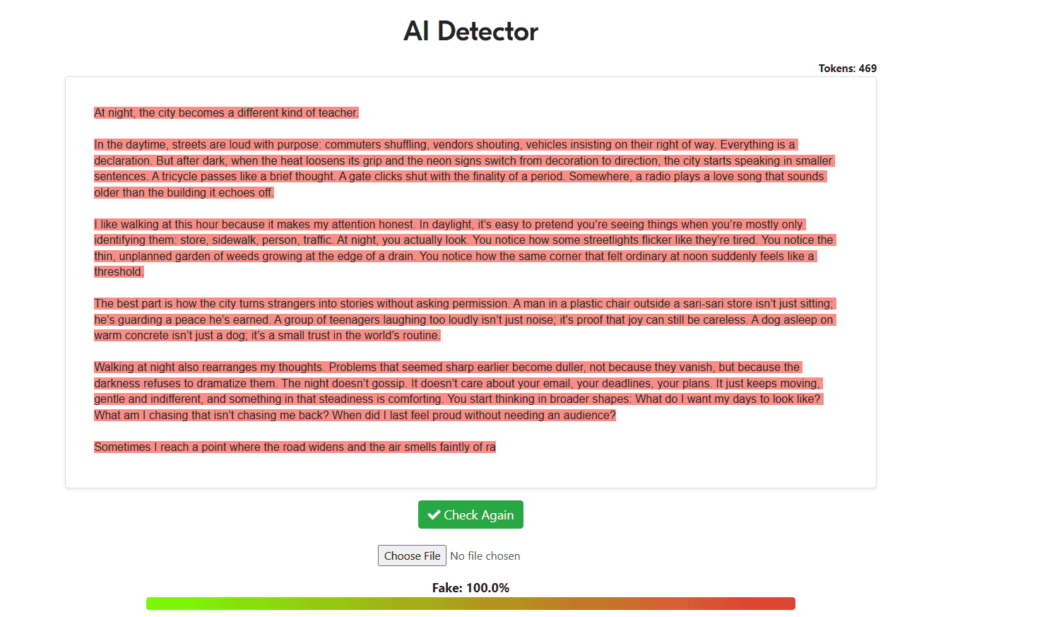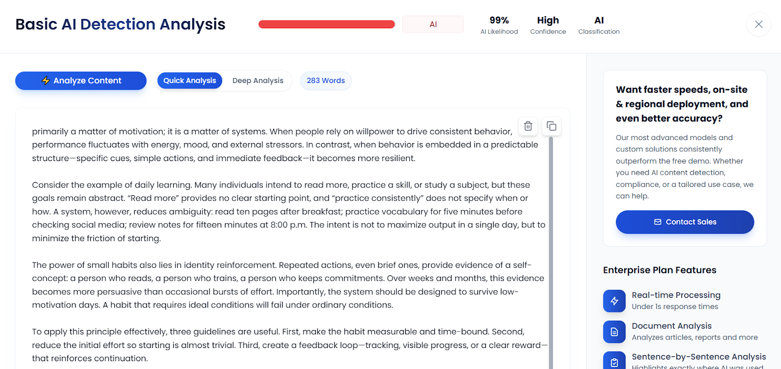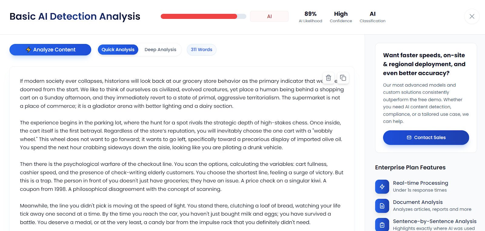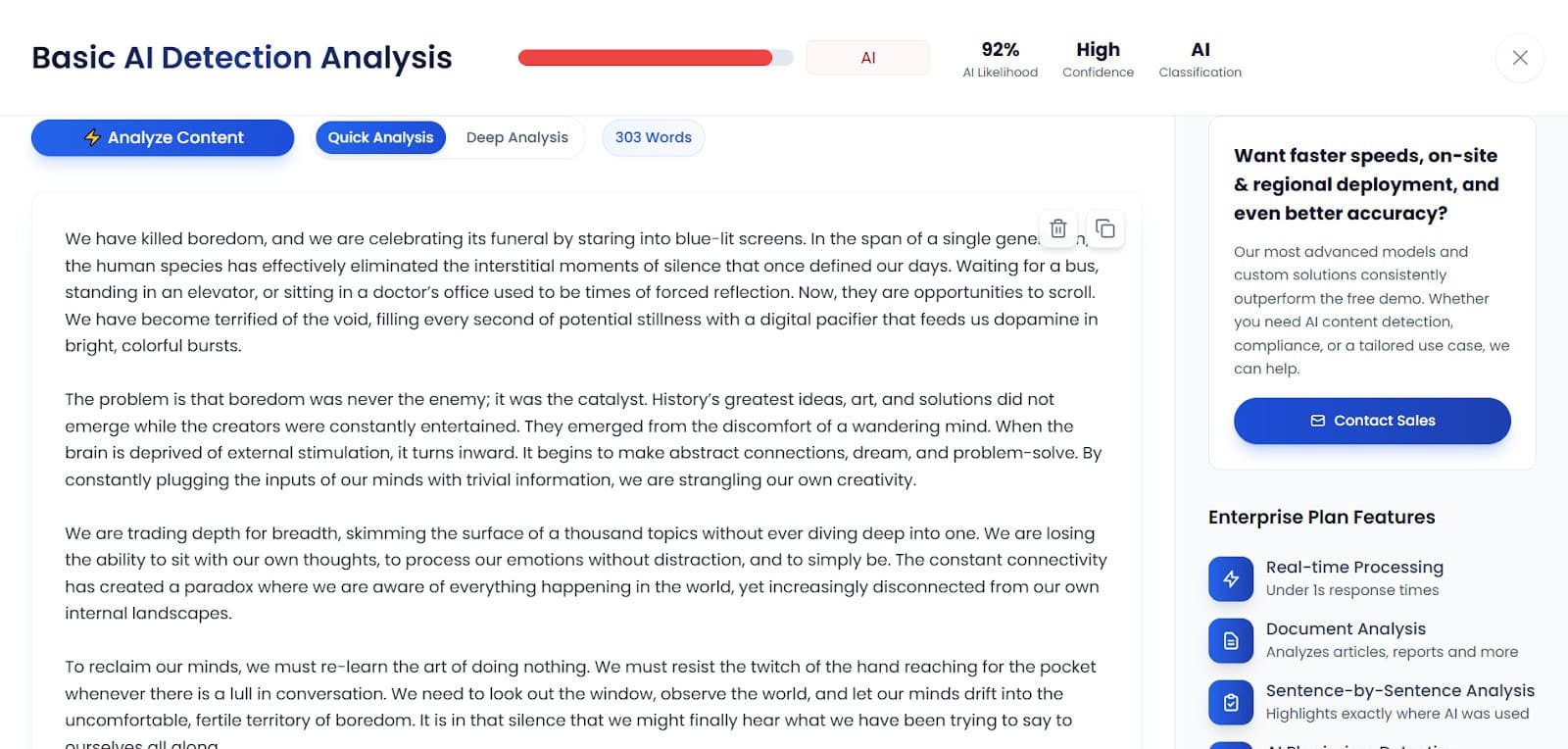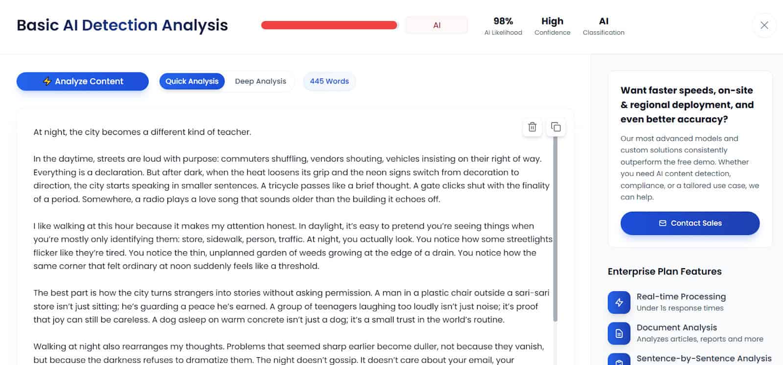 That stated, there’s a sensible catch that issues in actual utilization: Sapling’s free tier truncates enter at round 2,000 characters. Meaning longer essays, full weblog posts, or full-length educational papers typically get chopped — and detection high quality turns into a “partial scan” relatively than a real document-level verdict.