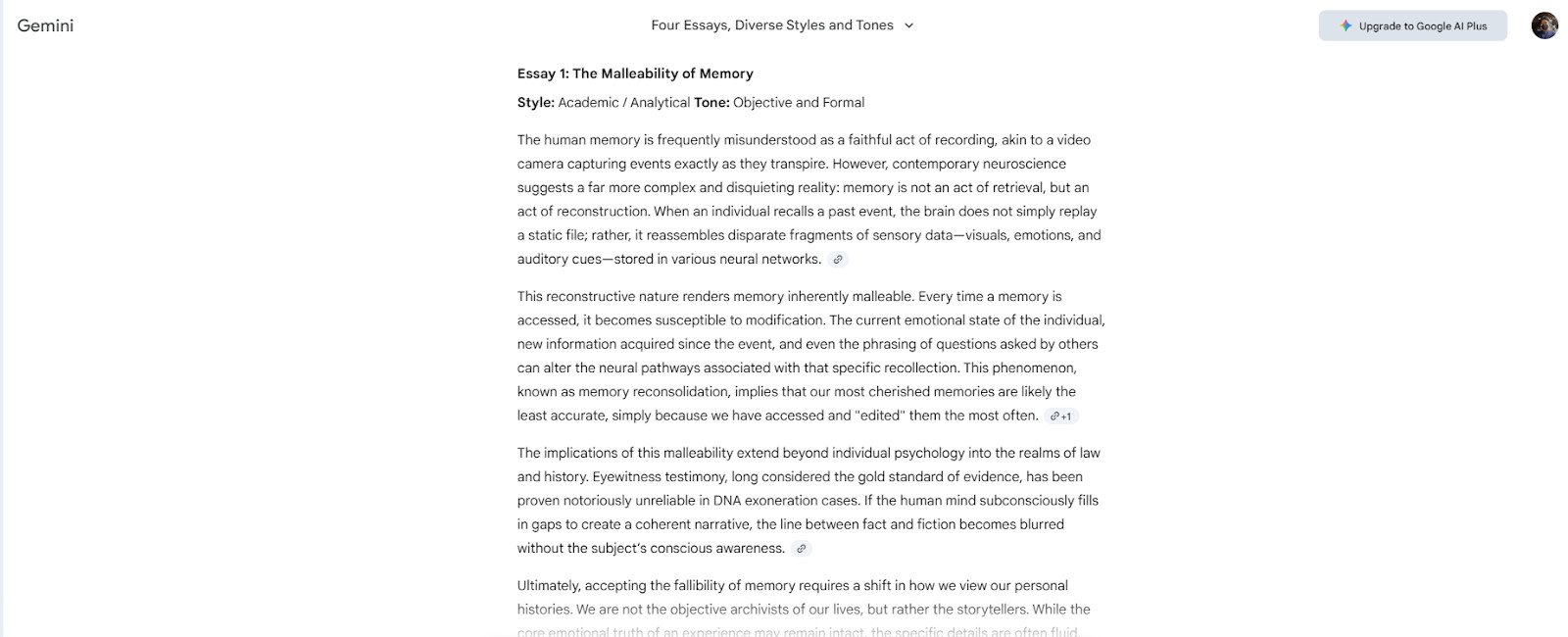 • Sources of AI textual content: ChatGPT (4) and Gemini (4)